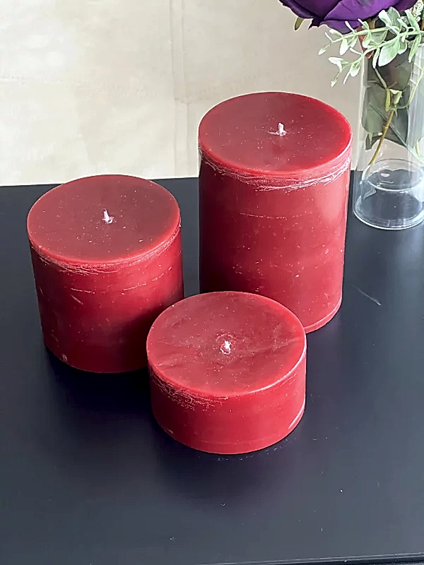 3'lü Set Silindir Bordo Mum
