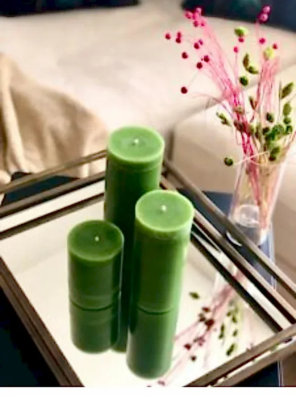 3'lü Set Silindir Yeşil Mum