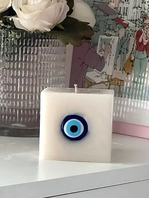 Kare Nazar Boncuklu Dekoratif Mum