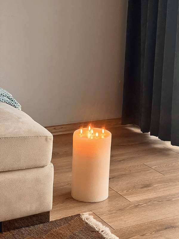 El döküm yöntemiyle ürettiğimiz beş fitilli mega boy silindir mum
